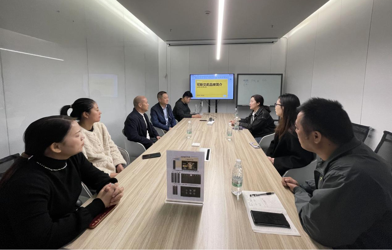 参访团队首先通过企业介绍及实地走访,全面了解可斯贝莉的供应链布局、线下门店网络及电商业务发展现状,对企业“全域运营” 的战略规划有了清晰认知。随后,座谈会在企业会议室正式召开,校企双方热烈研讨。