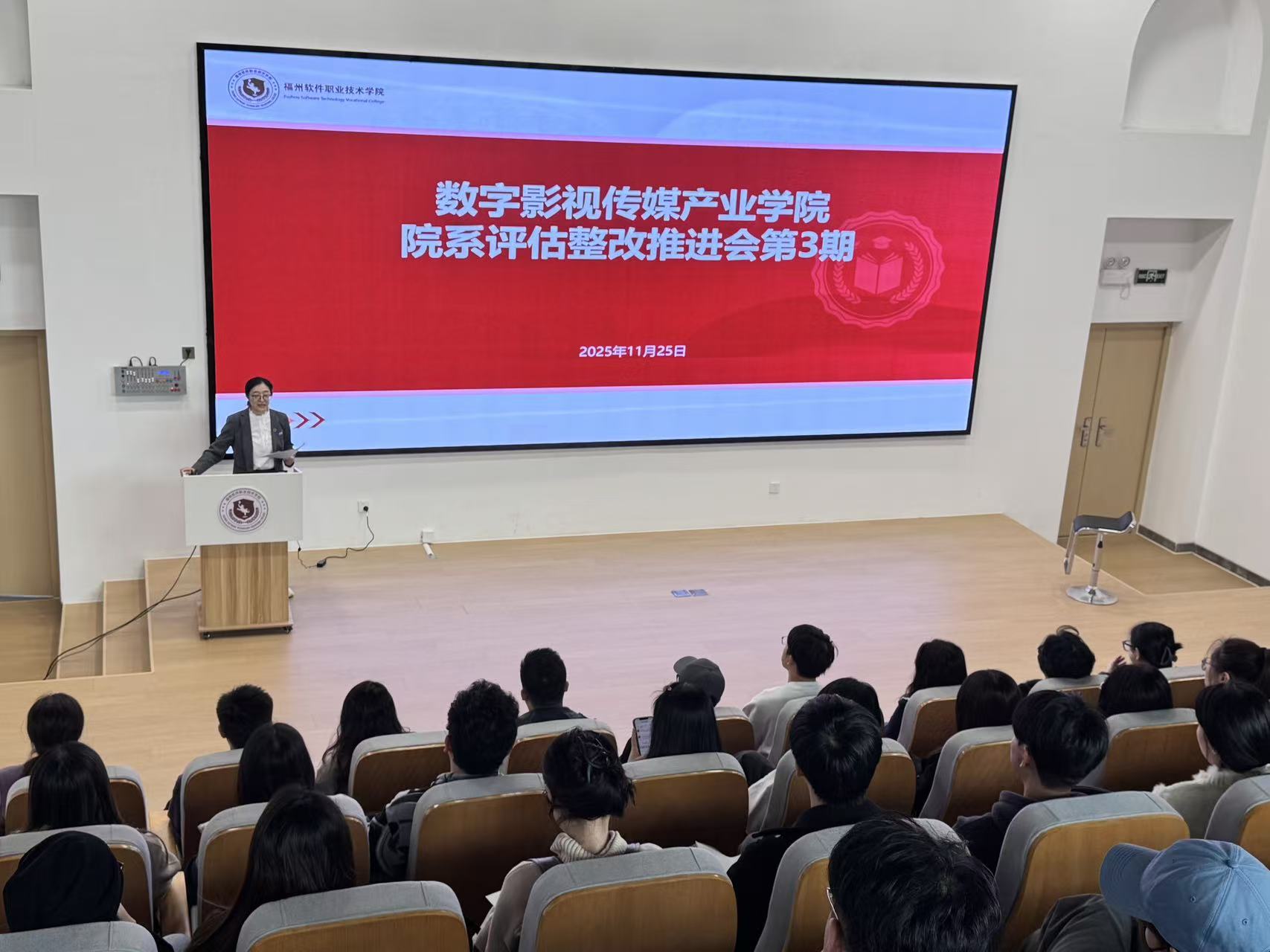 11月25日,数字影视传媒产业学院召开院系二轮评估整改推进会第三次会议,会议由院长徐颖主持,教学质量管理中心主任彭静到场指导,学院全体教职工参加会议。
