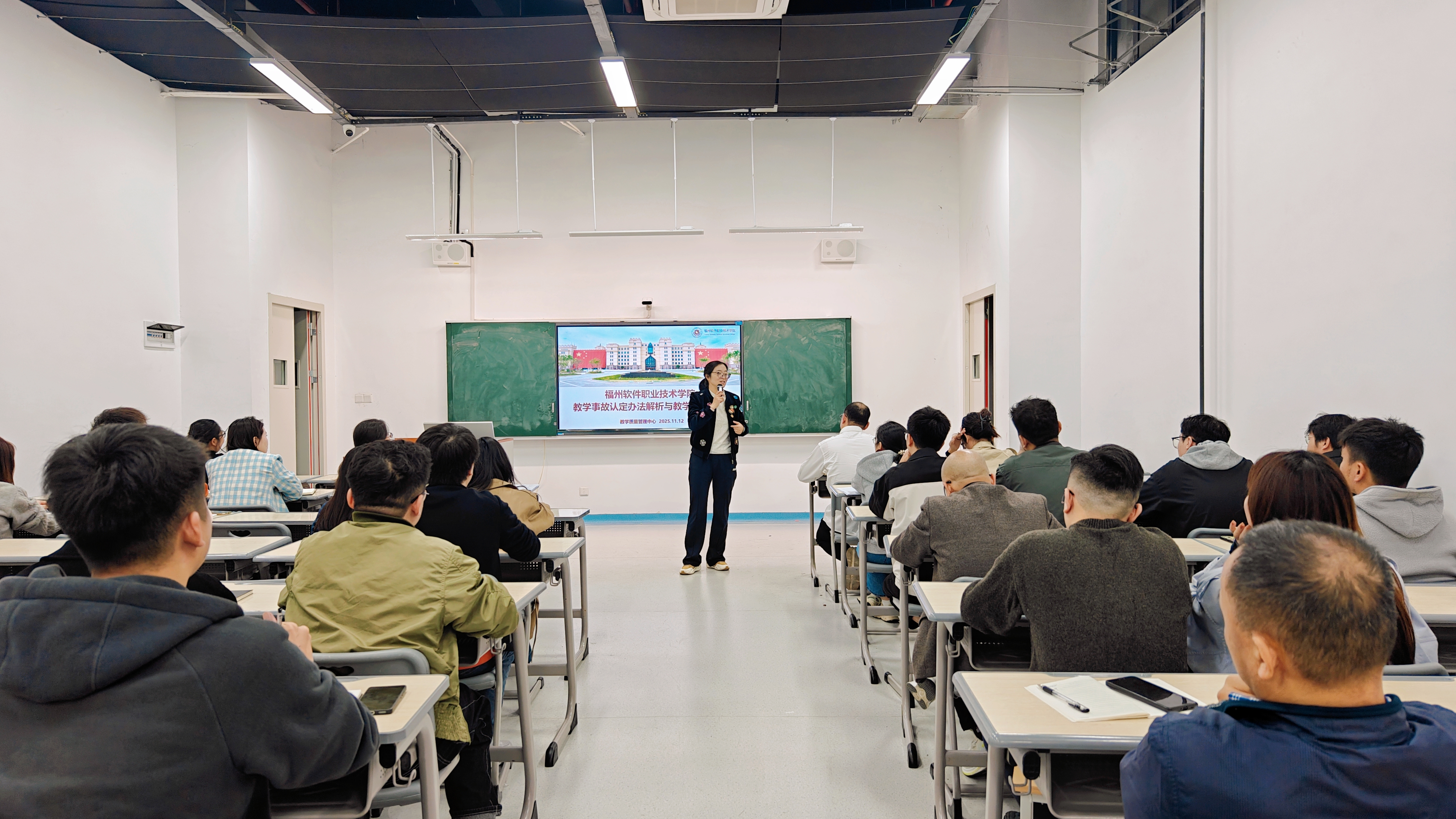 彭主任还结合案例提出教学建议,如通过“激励前排加分”优化管理,倡导分层教学、因材施教。她特别提醒,随着AI课程解析等技术应用,巡课系统将与教务系统打通,教师需确保授课内容与计划匹配。她同时公布,本年度教学事故发生率同比下降18.9%,显示规范建设取得成效。