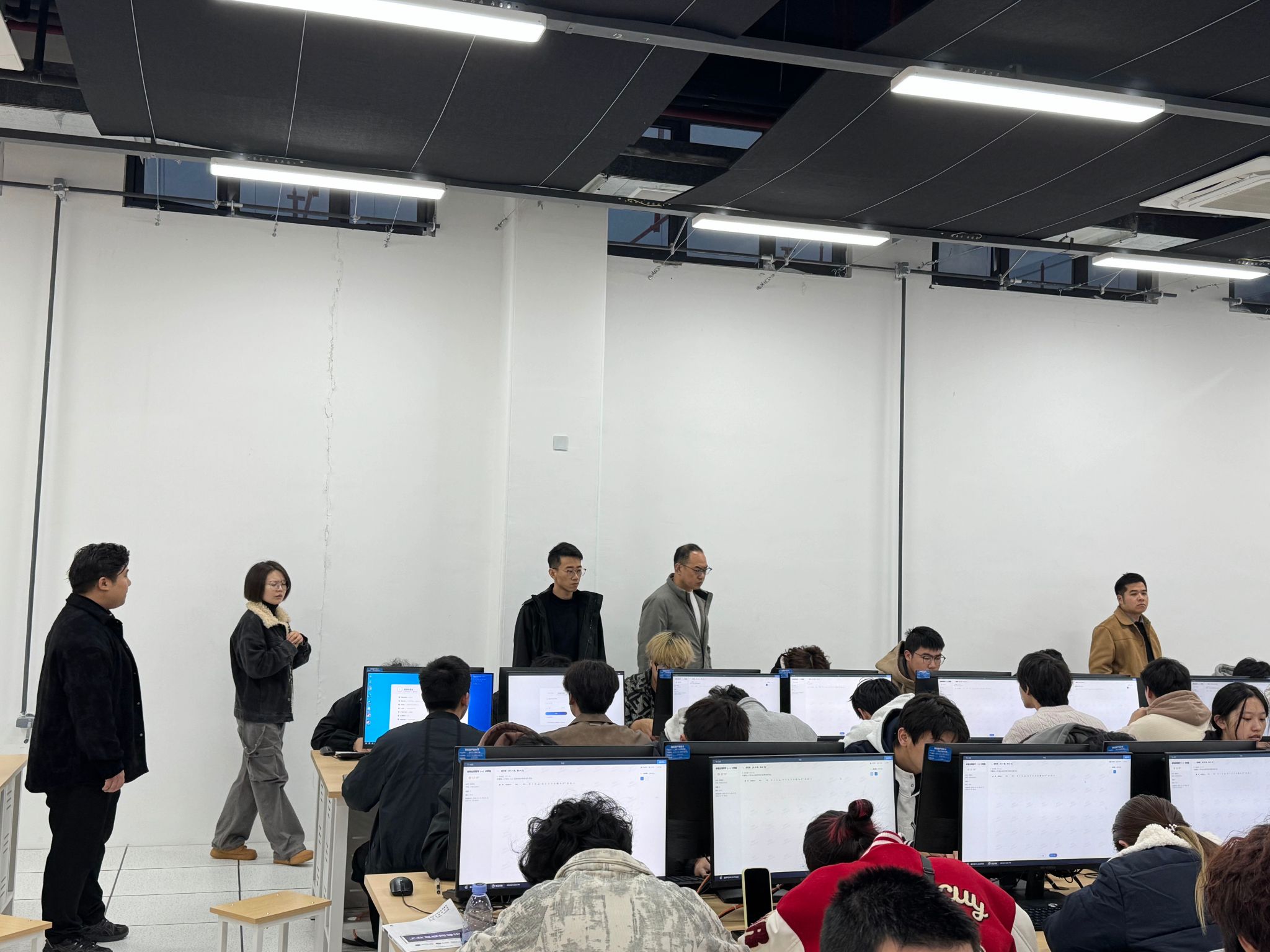 按照工作部署,各巡查组成员提前十分钟抵达指定集合点,文岭校区巡查队伍于教学楼二楼 D 区舞台前集结,未来技术产业学院产教融合基地巡查组在 1 号楼 L301 汇合,8:40 巡考工作准时拉开帷幕。同时教学质量管理中心在行政楼 203 同步开展线上巡考,实现线上线下全覆盖。巡查重点聚焦监考教师履职、考场规范、考试纪律执行及特殊问题处置四大核心环节。