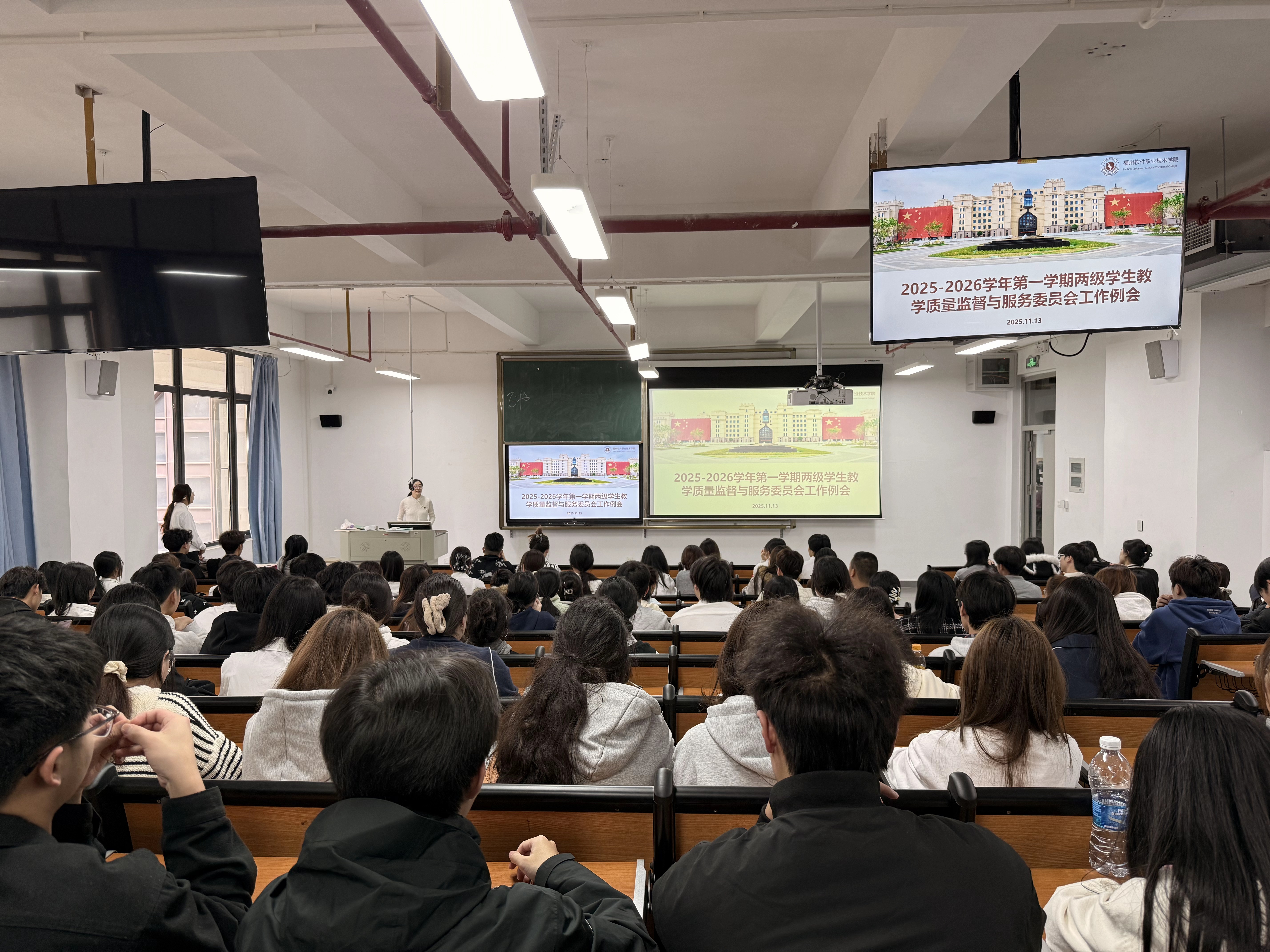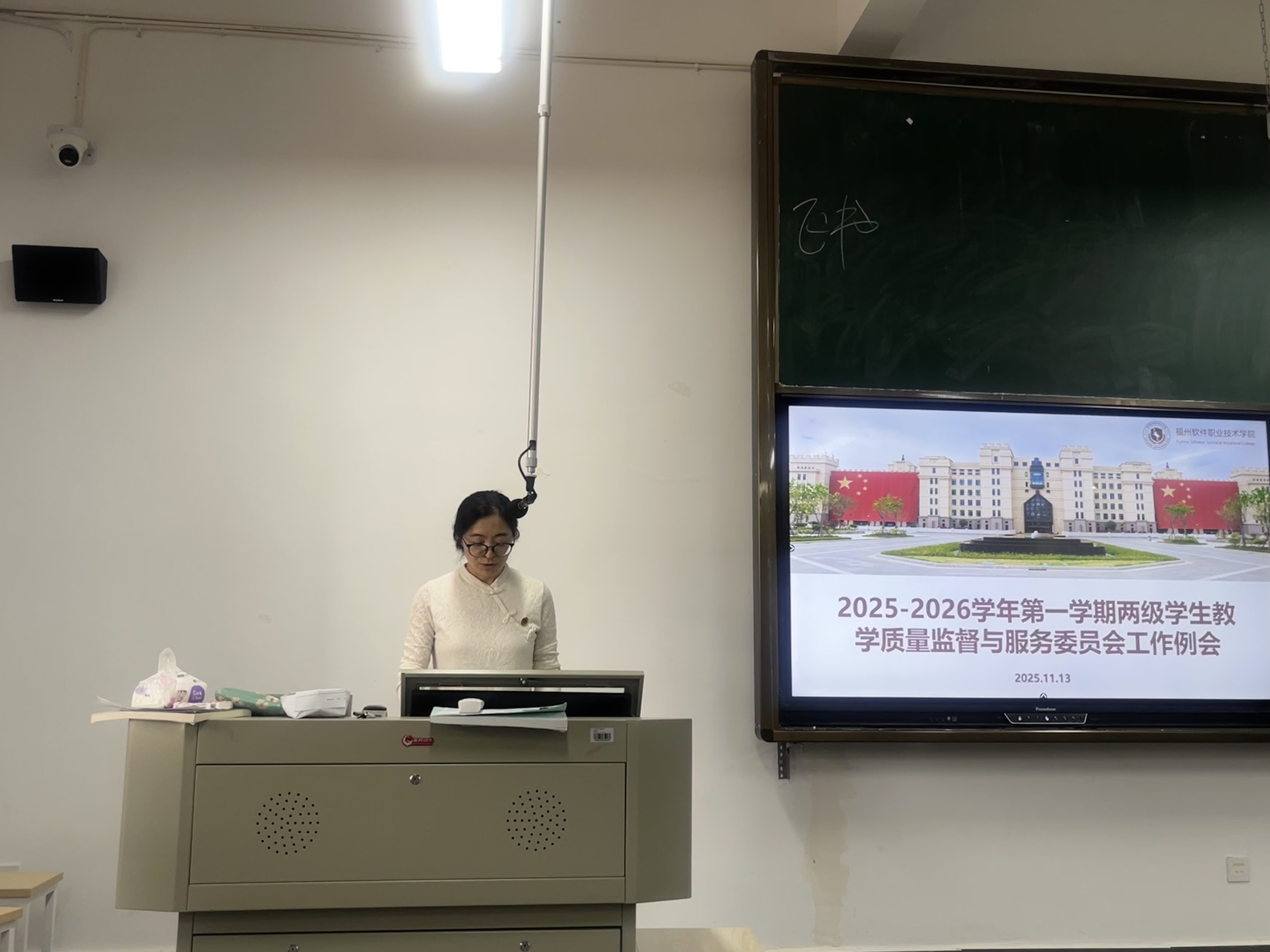 为持续发挥学生在教学质量监督中的主体作用,强化学生参与教学管理的责任意识,推动教学质量保障体系建设走深走实,2025年11月13日下午,教学质量管理中心在教学楼F308教室组织召开2025-2026学年第一学期福州软件职业技术学院两级学生教学质量监督与服务委员会工作例会。会议由学生教学质量监督与服务委员会副主任陈嘉颖同学主持,教学质量管理中心主任彭静、学生工作部(处)处长汪圳以及校、院两级委员会成员共同参会。