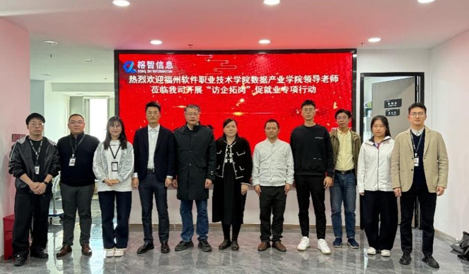 2025年11月20日,福州软件职业技术学院数据产业学院院长陈庆强、产业副院长徐静、党总支副书记王超、工业软件开发技术专业带头人黄应茂、大数据技术专业带头人陈文禧、教学质量管理中心和就业处人员以及福建省大数据集团数研院项目管理部和产教事业部人员等组成“访企拓岗”促就业专项参访团,先后走访办公家(福建)商业管理有限公司、福州市榕智信息科技有限公司、摩尔元数(福建)科技有限公司,精准对接企业人才需求,拓宽实习就业优质渠道,推动产教融合提质升级。