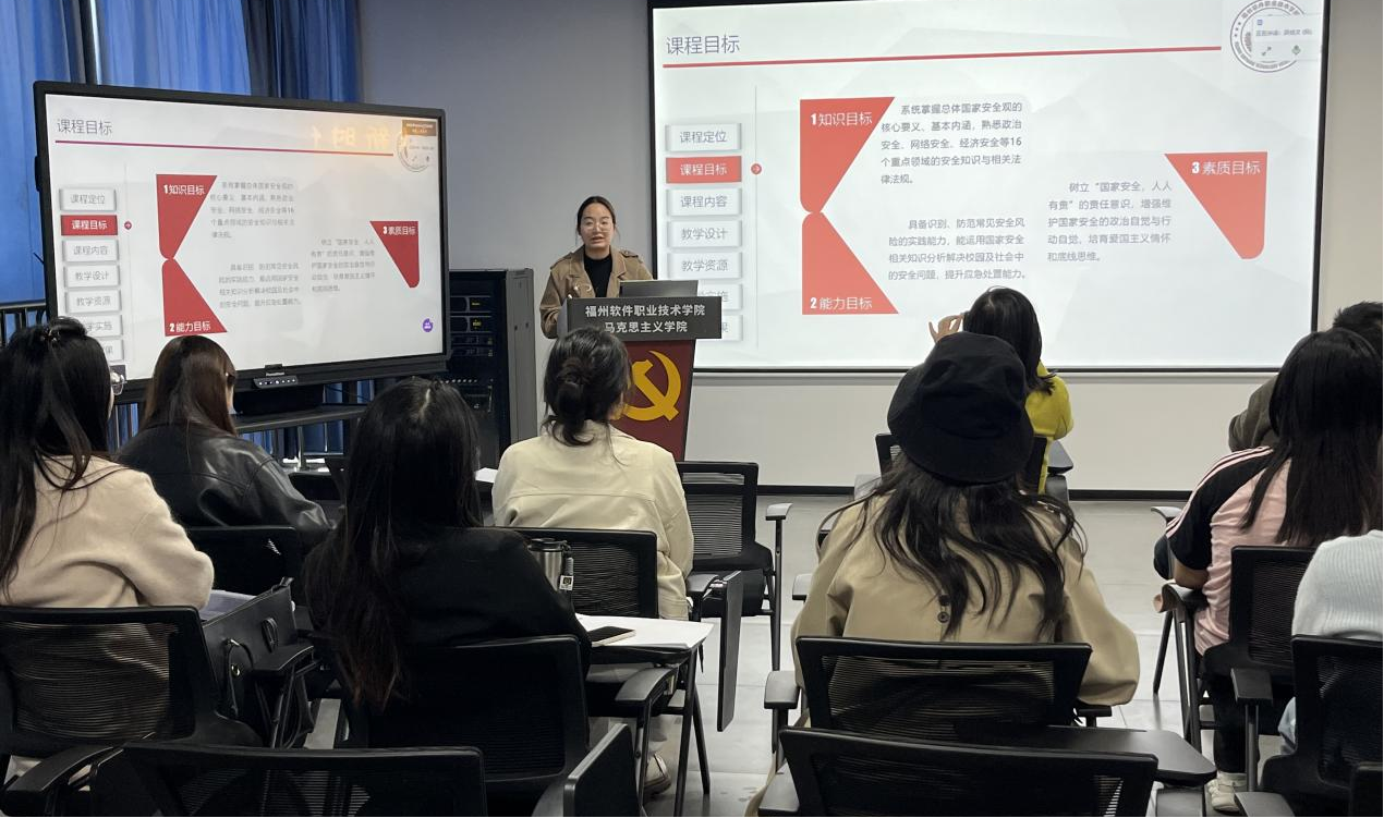 随后,马克思主义学院《国家安全教育》课程教研室主任李岳围绕课程定位、课程内容、教学与考核方式等方面进行课程说课展示。