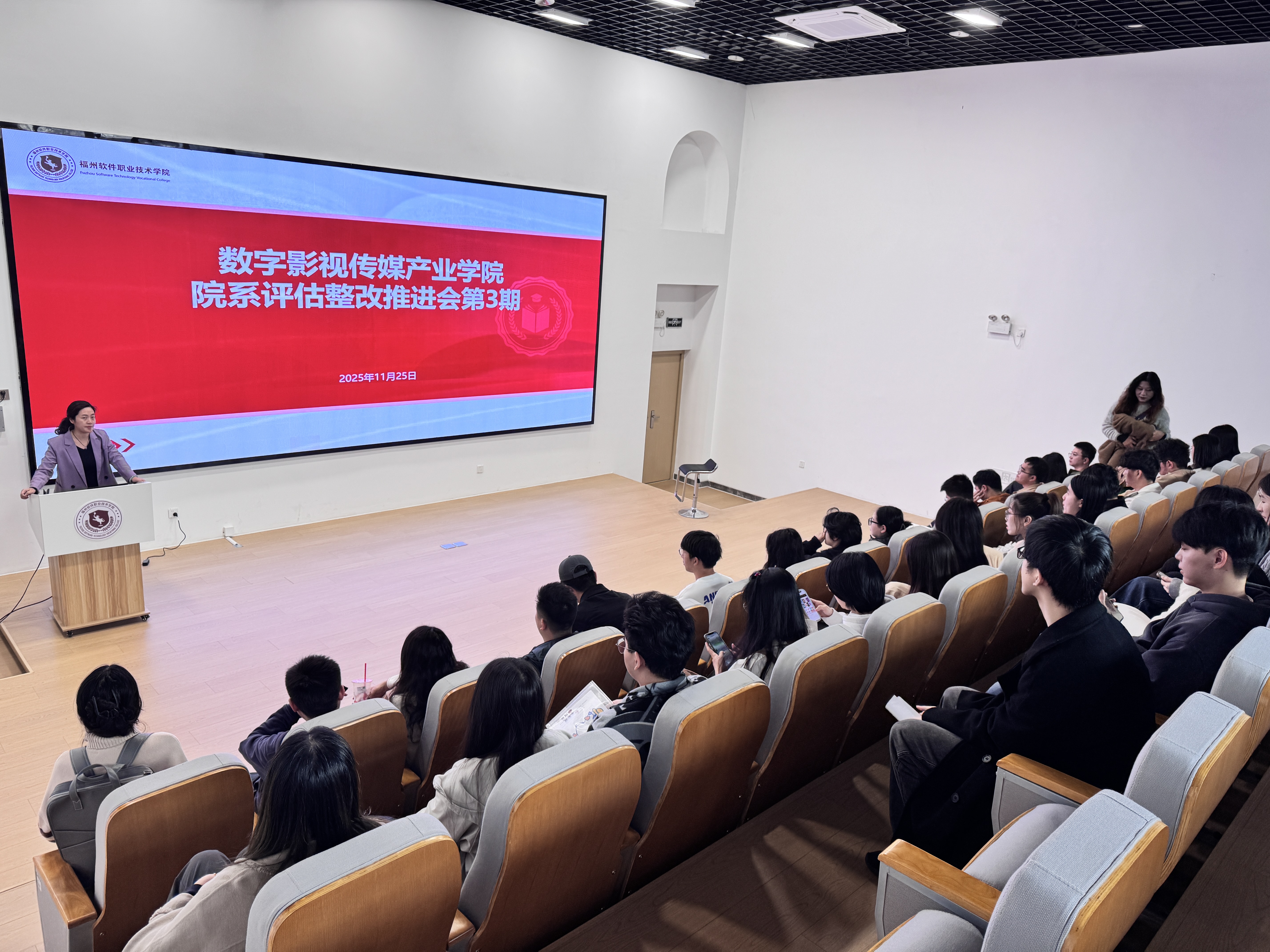 11月25日,数字影视传媒产业学院召开院系二轮评估整改推进会第三次会议,会议由院长徐颖主持,教学质量管理中心主任彭静到场指导,学院全体教职工参加会议。